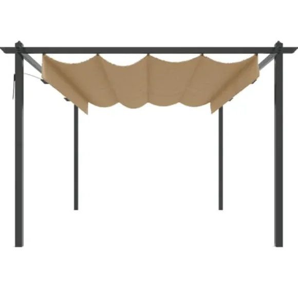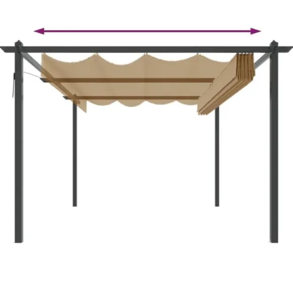 Paviljongen är tillverkad med en pulverlackerad stålram som gör den hållbar och stadig. Denna paviljong är utrustad med ett infällbart PA-belagt tak, vilket är UV- och vattenbeständigt. Du kan enkelt rotera och justera taket till det perfekta läget genom att helt enkelt använda handstången. Öppna den när du vill njuta av solen och stäng för skugga eller skydd. Paviljongen kommer bli ett perfekt val för dina utomhusaktiviteter.