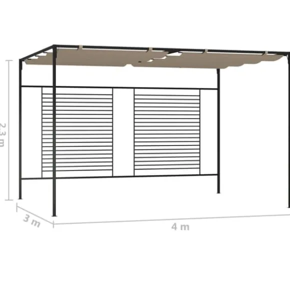 Denna paviljong har en massiv stålkonstruktion som gör den stark och stabil för utomhusbruk. Det infällbara taket skyddar mot regn och den gassande solen så att du kan ha det trevligt utomhus utan att oroa dig.