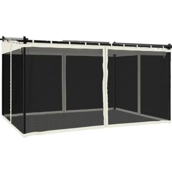 - Robust och hållbar ram: Ramen är tillverkad av rostbeständigt stål och uppskattas för långvarig utomhusbruk. Den garanterar stabilitet med solida balkar som stödjer taket och förstärkta stativ.