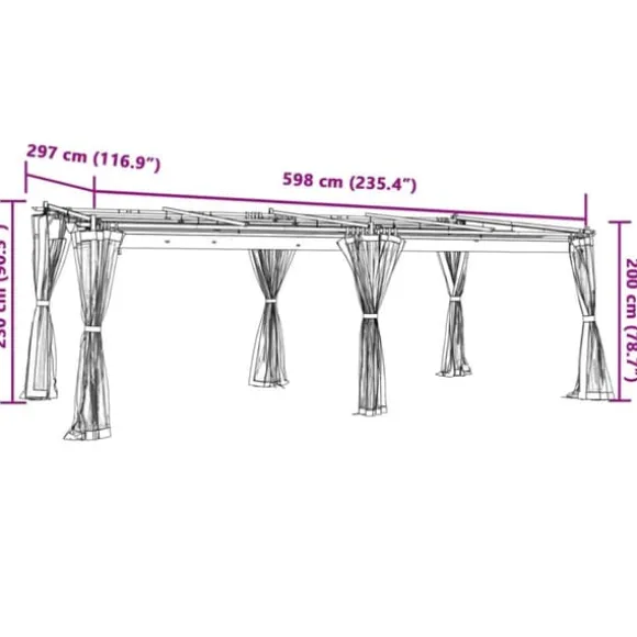 - Totala mått: 598 x 297 x 230 cm (L x B x H)