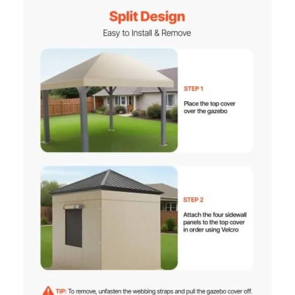 Skydda ditt lusthus under vintern med detta vädertåliga, dubbeltoppade lusthustak, utformat för att erbjuda fullständig inneslutning och pålitligt skydd mot tuffa väderförhållanden. Tillverkat av högdensitets, vattentätt PE-material, har det sidoväggar och fönster för ventilation och ljus, vilket säkerställer att ditt lusthus och dina utomhusmöbler förblir trygga och bekväma året runt. Enkelt att installera och ta bort, detta överdrag ger ökad stabilitet med en breddad bas och smidig åtkomst via en rymlig dörr.