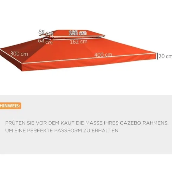 – HÖGKVALITATIVT ERSÄTTNINGSTAK: Detta dubbla tak är lämpligt för trädgårdspaviljonger med en grundyta på 4 m x 3 m.