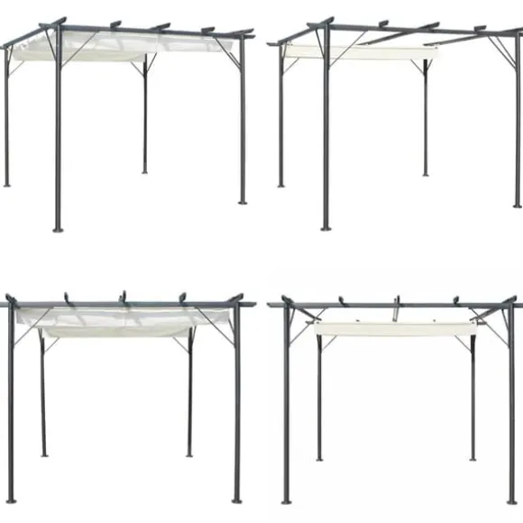 Denna mångsidiga pergola kommer att bli ett dekorativt tillskott till trädgården eller andra utomhusplatser. Tack vare dess infällbara taksystem passar denna pergola perfekt för att erbjuda skugga från solen och skydd från regn.