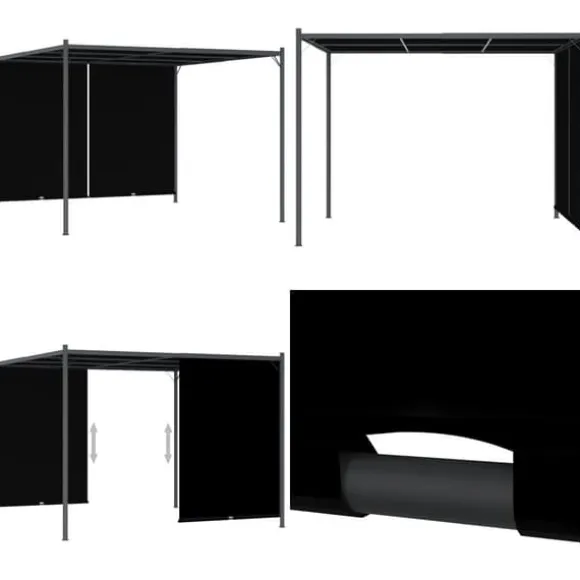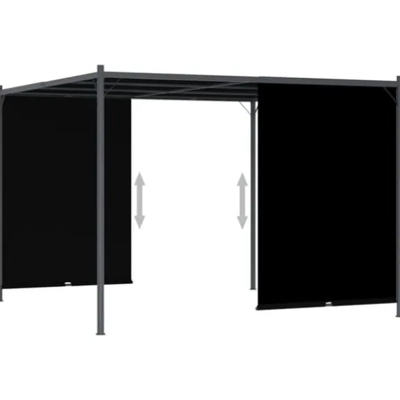 Denna innovativa pergola har ett justerbart, infällbart tak som kan sänkas eller höjas på sidorna med de inbyggda handtagen. Därför kan du själv välja hur mycket sol eller skugga du vill ha. Pergolan är tillverkad i pulverlackerat stål och är väldigt stadig och hållbar. Taket är tillverkat i polyestertyg med PA-beläggning och är vatten- och väderbeständigt. Det kan även tas av för att tvättas och förvaras när det inte används.