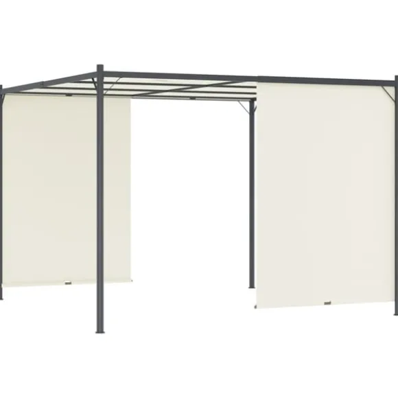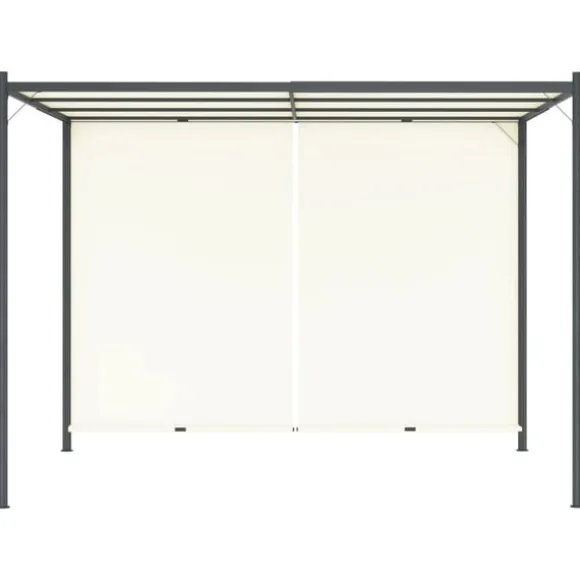 Denna innovativa pergola har ett justerbart, infällbart tak som kan sänkas eller höjas på sidorna med de inbyggda handtagen. Därför kan du själv välja hur mycket sol eller skugga du vill ha. Pergolan är tillverkad i högkvalitativt pulverlackerat stål och är väldigt stadig och hållbar. Taket är tillverkat i polyestertyg med PA-beläggning och är vatten- och väderbeständigt. Det kan även tas av för att tvättas och förvaras när det inte används.