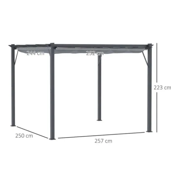 – FÖR UTOMHUSANVÄNDNING: Pergolans skjutbar tak är försett med en vattenavvisande beläggning, är väderbeständigt och passar perfekt för utomhusbruk. Totala mått: 300L x 300B x 223H cm, vikt 31 kg.