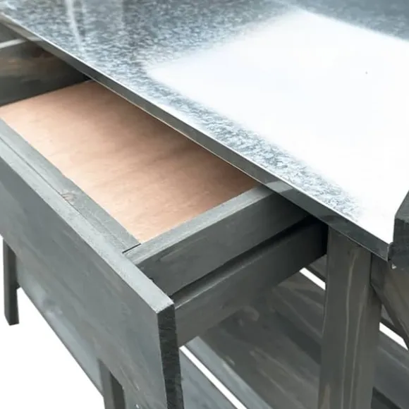 - Mångsidigt förvaringsutrymme: Bänken med öppna hyllor, en toppskena och en låda har tillräckligt med utrymme för relaterade varor som små trädgårdsredskap, jord, gödningsmedel etc.