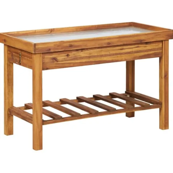 Planteringsbordet i trä är tillverkat av massivt akaciaträ med en arbetsyta i zink, som är hållbart och stabilt. Det har en naturlig finish som kan målas eller betsas. Längst ner finns dessutom en förvaringshylla som ger dig massor av plats att förvara odlingsjord, krukor, handredskap, vattenkannor med mera.