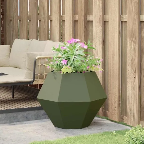 - Massiv stål konstruktion Den här krukan är gjord av högkvalitativt stål, vilket ger den en lång hållbarhet, oavsett väder. Den starka konstruktionen gör att dina växter får ett tryggt hem.