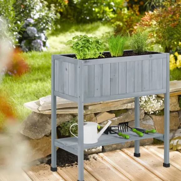 Denna upphöjda planteringslåda i trä är perfekt för att skapa din egen trädgård på terrass, balkong eller uteplats, vilket gör det möjligt att odla örter, grönsaker eller blommor bekvämt stående. Den upphöjda designen skyddar dina växter från skadedjur, ogräs och markfrost, medan en praktisk hylla ger extra förvaring för trädgårdstillbehör. Den medföljande avtagbara innerpåsen och enkla monteringen gör den till ett praktiskt val för stadsodlare.