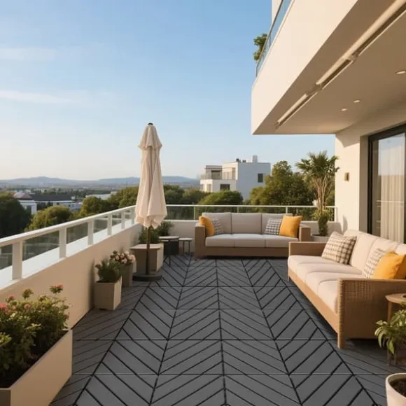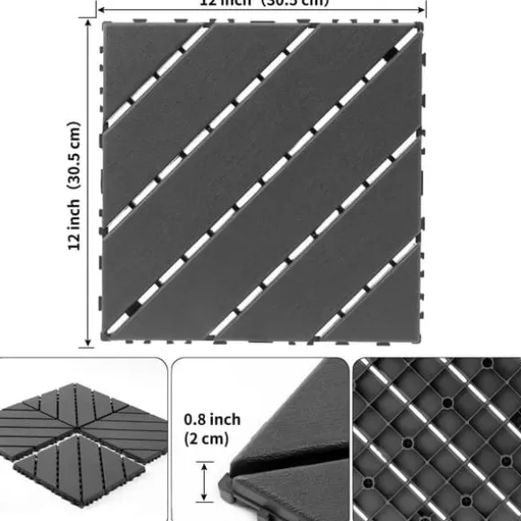 Vattentålig och lättskött: De övre ytorna på plattorna har flera dräneringshål för att snabbt spola bort vatten, vilket gör dem idealiska för utomhusbruk som patio, däck eller uteplattor. De samlar inte på sig vatten.