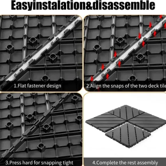Enkel installation och demontering: Deckplattorna är hopkopplade med ett snap-design och håller sig fast på plats. De är lätta att montera och demontera på några minuter.
