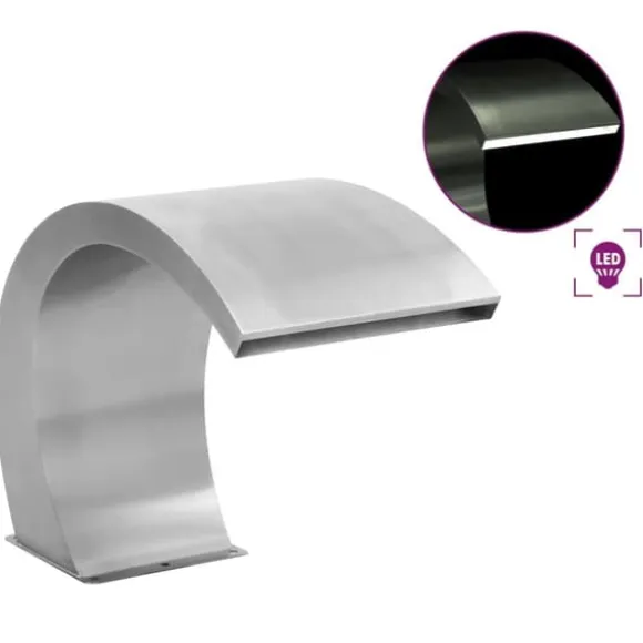 Eftersom den är tillverkat i premium rostfritt stål är den klorvattenbeständig och även väldigt hållbar. Den är speciellt utformad för att garantera ett konstant och jämt vattenflöde. Fontänen har LED-belysning och därmed ingår en kontakt vid leverans.