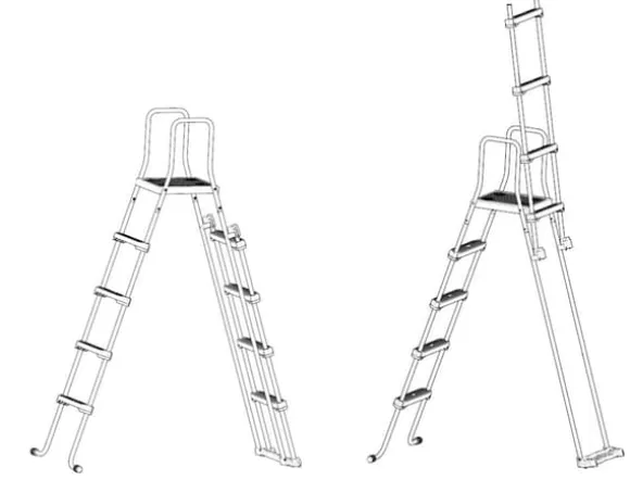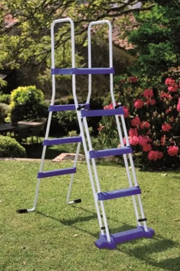 Stegen uppfyller de stränga Europeiska säkerhetskraven NF P90-317 för barnsäkerhet. Utsidan är uppfällbar för att hindra små barn från att klättra upp i poolen.