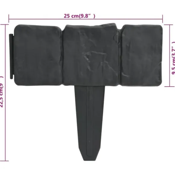 Rabattkanten har hög stabilitet och hållbarhet och kan även sättas i marken med dess spett. Varje del av rabattkanten har en total längd på 25 cm och en höjd på 22,5 cm. I leveransen ingår 41 delar, totallängd ca. 10 meter.