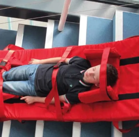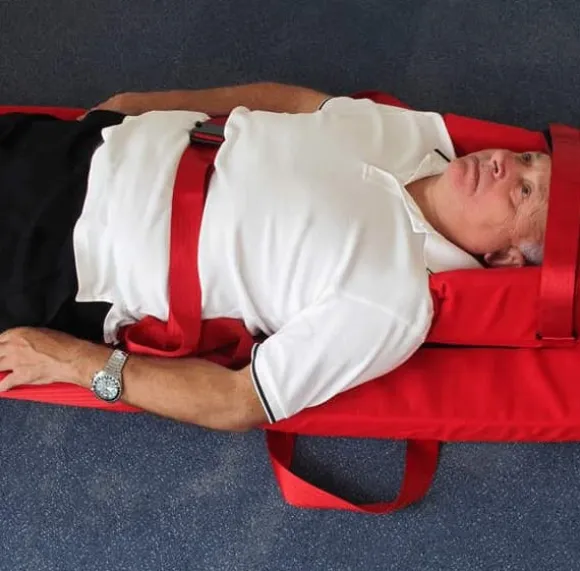 Räddningsmadrassen Premium Evacuslider är en kostnadseffektiv lösning för att säkert evakuera rörelsehindrade personer. Madrassen är helt justerbar, vilket gör det möjligt att evakuera såväl barn som vuxna. Den är tillverkad av ett tåkigt, enkelt att torka rent material och ger komfort och stöd på grund av den tjocka skummadrassen. Den integrerade fotfickan och 3 säkerhetssele hjälper till att säkra och stabilisera patienten. Den plana baksidan gör det också möjligt att transportera patienten horisontellt.