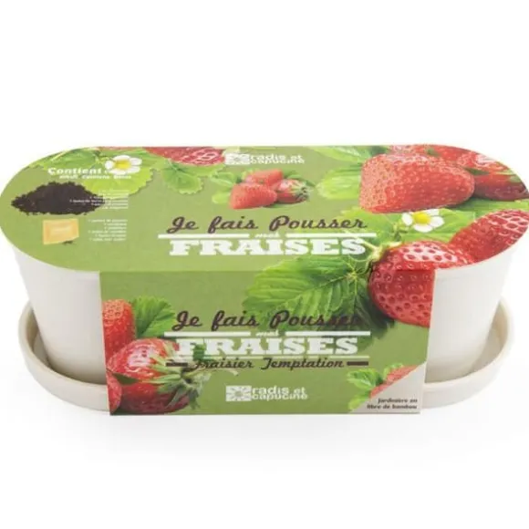 Frön för att så och odla i ditt kök, på en fönsterbräda när det är fint väder. Planteringslådan är gjord av bambufibrer, ett material som är tillräckligt starkt för att hålla i flera år och som med tiden är helt biologiskt nedbrytbart. Varje kruka innehåller allt som behövs för att odla vilda jordgubbar.