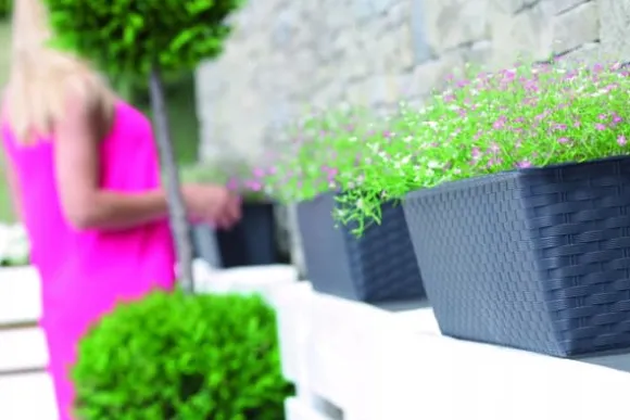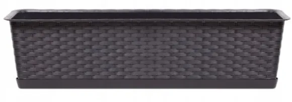 Den avlånga RATOLLA P balkongkrukan med fat, med en textur som troget imiterar naturlig rottingvävning, låter dig skapa vackra, unika interiörer och obegränsat arrangera ditt utomhusutrymme. Dess klassiska, rena design gör den lämplig för alla rum och harmoniserar olika stilar och preferenser. Dess funktionalitet uttrycks främst i dess bekvämlighet oavsett väder.