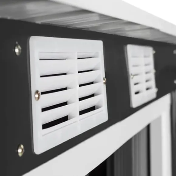 En redskapsbod från tectake är en perfekt plats för förvaring av dina verktyg, trädgårdsredskap och trädgårdsmöbler. Den stabila redskapssboden ger inte bara skydd mot väder och vind, utan också mot smuts och damm. Ett hänglås kan hängas på skjutdörren för att skydda mot inbrott. Tack vare materialegenskaperna hos den lackerade stålplåten är trädgårdsförrådet underhållsfritt och har mycket lång livslängd. Metallfundamentet garanterar att trädgårdsskjul står stadigt. Vid behov kan också ett golv läggas inne i friggeboden. Skjutdörren gör det lätt och bekvämt att komma åt sakerna och skapar ännu mer förvaringsutrymme. Vår redskapsbod är en mångsidig förvaringsvariant för din trädgård som dessutom har ett tidlöst utseende.