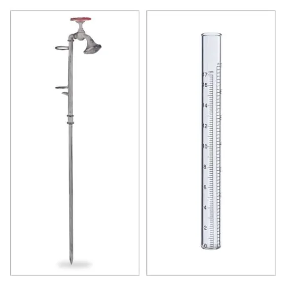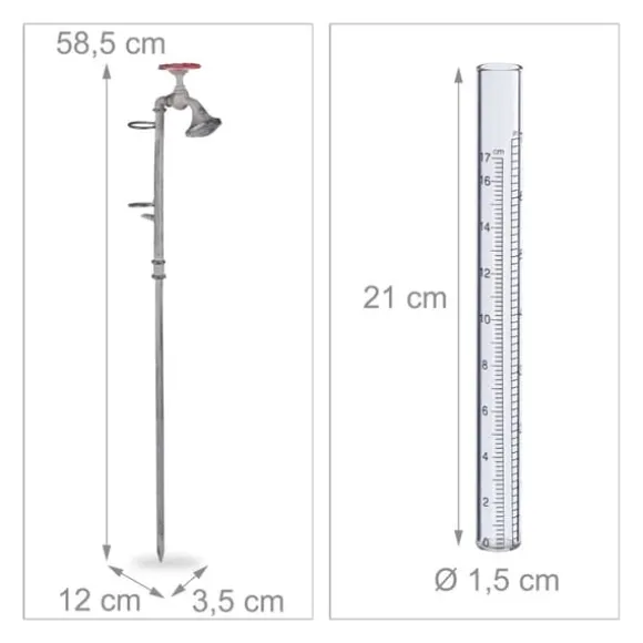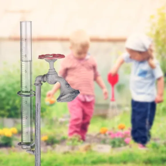 Denna regnmätare är utformad för att hjälpa dig enkelt övervaka små mängder nederbörd i din trädgård. Med en charmig vintage vattenkransdesign är den både dekorativ och funktionell, tillverkad av hållbara, väderbeständiga material för långvarig användning utomhus. Mätaren är enkel att installera med sitt skruvbara jordspett och lätt att tömma för smidig skötsel.