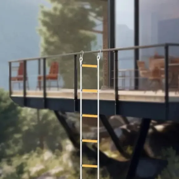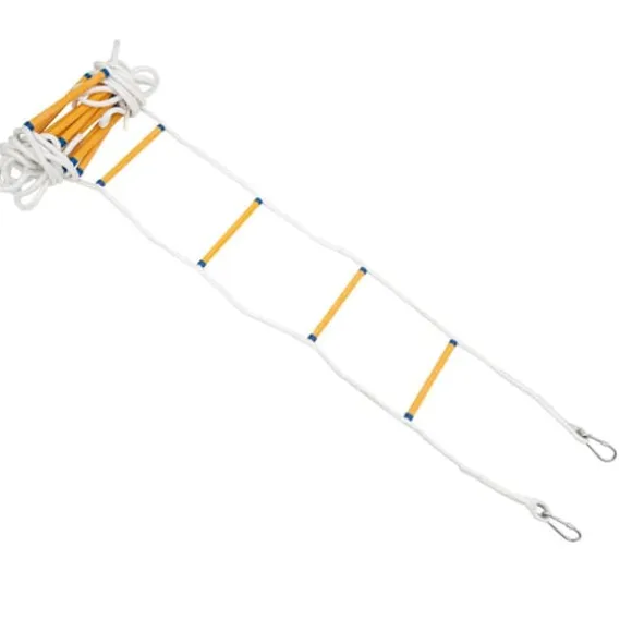 Rope ladder för snabb brandutrymning: slitstark konstruktion i harts och manganstål, greppvänliga steg och redo att användas på sekunder – ett tryggt säkerhetstillskott för hem och kontor.