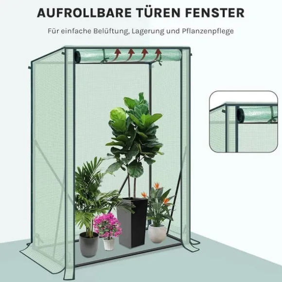 Detta rotz-folie växthus säkerställer optimalt växtskydd med en UV-resistent PE-rutnät presenning och robusta pulverbelagda stålrör. Idealisk för att vårda olika växttyper erbjuder det skydd mot hårda väderförhållanden. Den mångsidiga designen inkluderar en dragkedja stor dörr för att reglera det inre klimatet effektivt. Snabb och enkel montering utan verktyg gör det perfekt för både amatör- och professionella trädgårdsmästare.