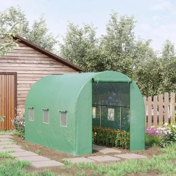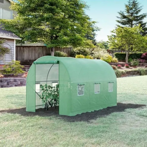 Är du en ivrig trädgårdsmästare som vill vara aktiv året runt? Säkra dina växter med det perfekta skyddet mot ogynnsamt väder med vårt växthus från Rootz! Vårt växthus är tillverkat av vattenavvisande och genomskinlig film och erbjuder tillräckligt med utrymme för att odla frukt, grönsaker och blommor. Tack vare den extra långa filmen och den medföljande tejpen är montering och fastsättning på olika ytor inte längre ett problem!