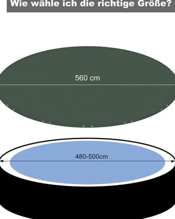 Vårt skydd är utrustat med aluminiumöglor och ett stålrep, och kan fästas säkert och justeras för en åtsittande passform. Den är utformad för att vara större än din pools diameter för optimal täckning och enkel användning.