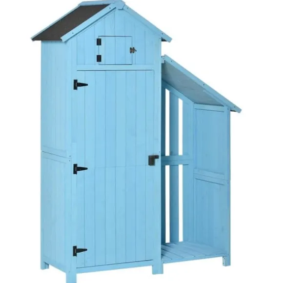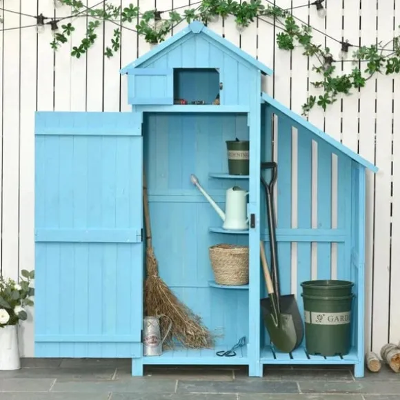 FIR TRUCTURE: Ett tufft och solidt stycke, detta trädgårdsförvaringsskåp är med en skyddande färgbeläggning för extra skydd.