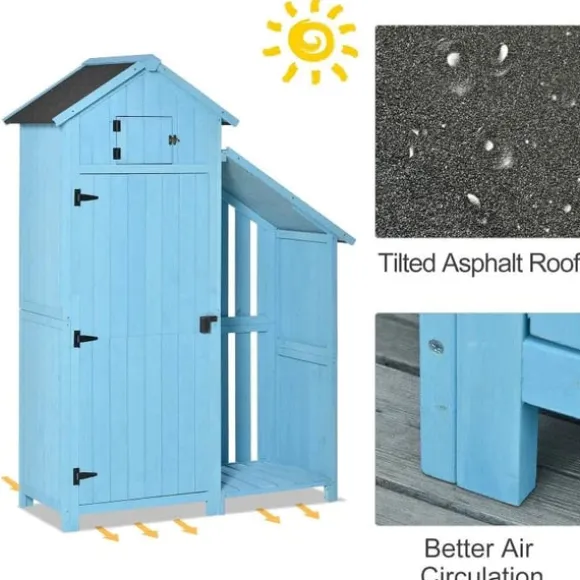 Ta tillbaka trädgårdsutrymmet med detta höga och smala vertikala förvaringsskjul från Rootz. Tillverkat av granträ är detta verktygsskåp täckt med ett lager skyddsfärg, som hjälper till att skydda strukturen från lätta till milda väderskador för extra slitage. Den öppna högra sidan är perfekt för ved. Ett sluttande tak förhindrar vattenansamling, med asfalttäckning så att vätska inte sipprar igenom. Den är färdig med en låsbar dörr som gör den säker. Ett praktiskt föremål som passar alla utomhusutrymmen.