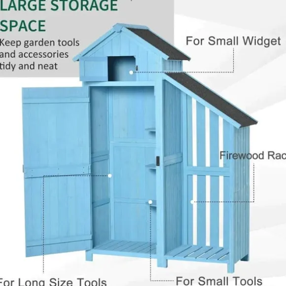 FÖRVARA & ORGANISERA VERKTYG: Detta utomhusförvaringsskåp har tre delar. Den vänstra används för att förvara vattenkanna, spadar, krukor eller trädgårdsredskap med långa skaft; Ett litet rutnät på toppen för att lagra små verktyg; Den öppna högra sidan är perfekt för ved.