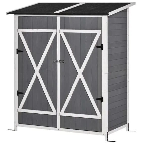 Detta trädgårdsskjul från Rootz är en säker och praktisk plats att förvara dina trädgårdstillbehör och verktyg. Den rustika designen passar bra i alla trädgårdar. Den stabila konstruktionen av lackat granträ är vattenavvisande och väderbeständig. Medföljer ett separat bord för trädgårdsarbete, som även kan användas som pall. Detta redskapsskjul från Rootz skyddar dina trädgårdstillbehör från vind och väder.