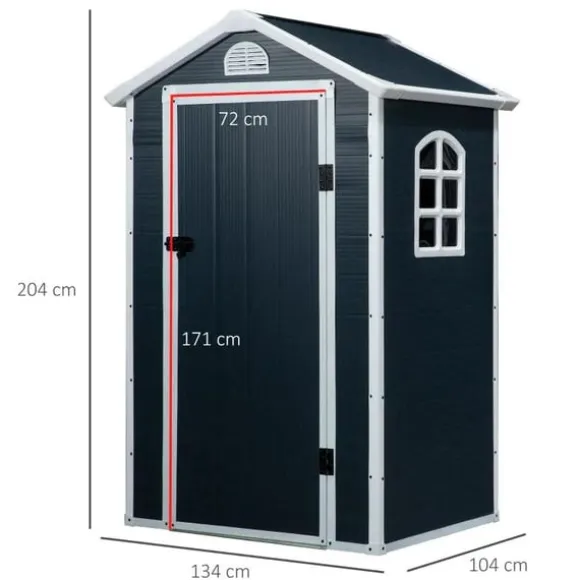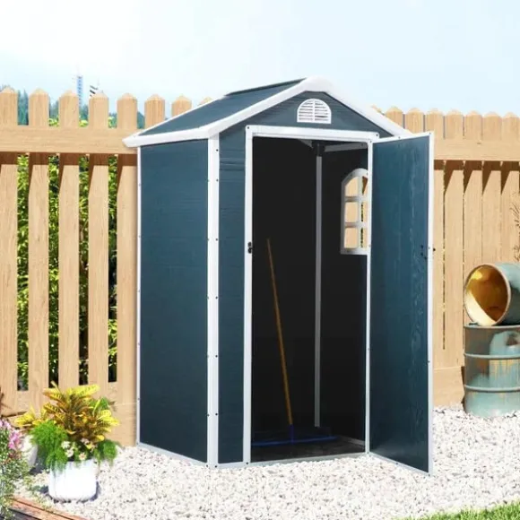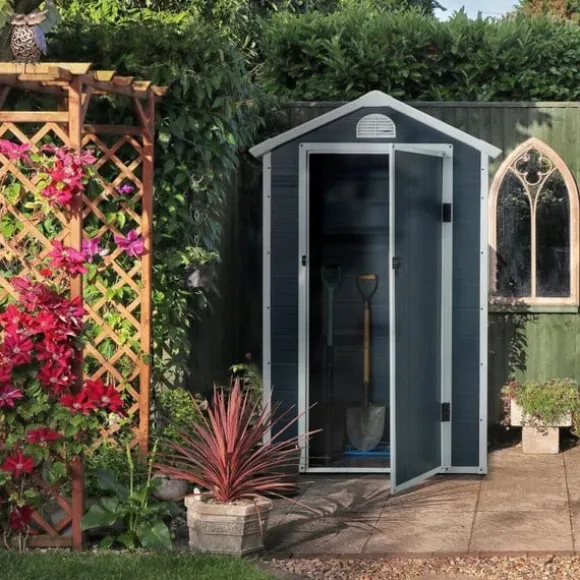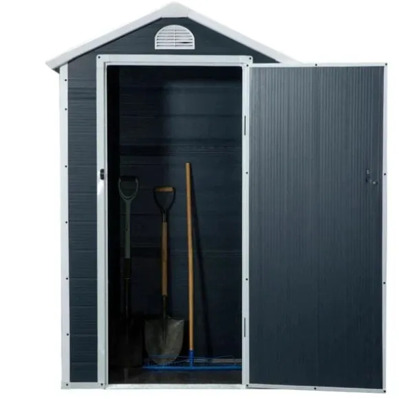 Rootz trädgårdsskjul är tillverkat av polypropenplast och är hållbart och korrosionsbeständigt och kommer att ta en stolthet i din trädgård i många år framöver. Trädgårdsskjulet har ett sluttande tak för att förhindra vattenansamling, en låsbar dörr för enkel åtkomst och två ventiler för intern luftcirkulation för att förhindra mögel och fukt. Trädgårdsredskapsboden kan användas för att förvara alla trädgårdsredskap.