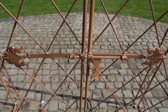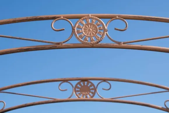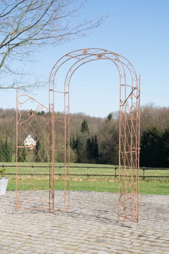 Vår exklusiva rosbåge med grind är kärleksfullt dekorerad med många detaljer, vilket gör den idealisk som ett klättringshjälp för murgröna och andra klättringsväxter. Denna båge, med sina två låsbara och vackert dekorerade grindar, är en riktig ögonfångare i vilken trädgård som helst. Rosbågen är handgjord från järn, vilket säkerställer extrem styrka. En speciell beläggning ger denna båge hög kvalitet och exceptionell hållbarhet. Detta är avgörande för att skydda bågen från att sjunka under full blom. Det finns totalt fyra prefabricerade hål för enkel fästning av bågen till marken. Observera att markkrokarna för montering inte ingår. Dessa kan köpas separat.
