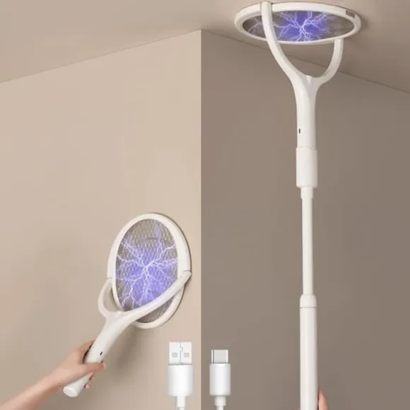 Denna patentbelagda flugsmälla eliminerar flygande insekter effektivt med roterande huvuddesign och kraftfull 3500V-stöt. Med uppladdningsbart batteri och 3-lagers säkerhetsnät är den perfekt för tak, väggar eller luftfångst.