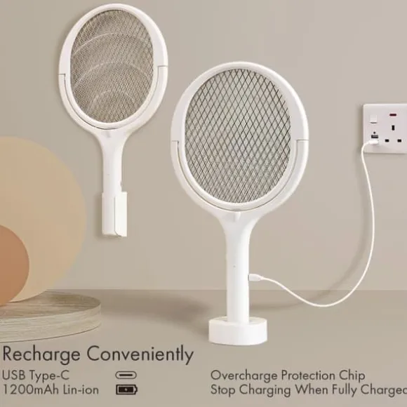 3500V-stöten eliminerar alla flygande insekter omedelbart, medan det 3-lagers säkerhetsnätet förhindrar oavsiktliga stötar. Det uppladdningsbara 1200mAh-batteriet (USB-C) ger lång körtid och enkelt underhåll.