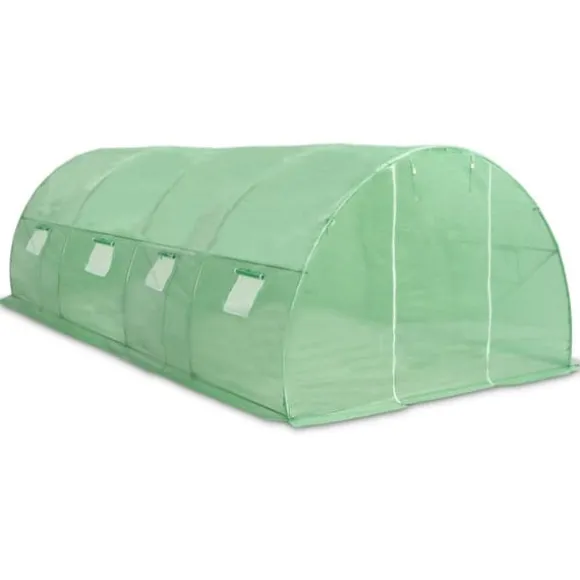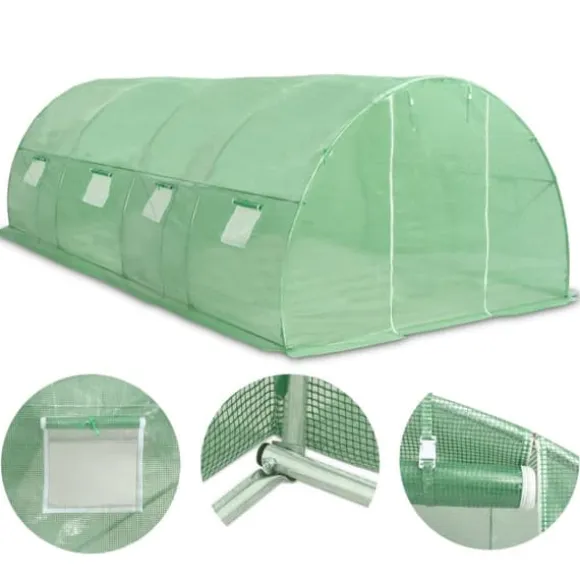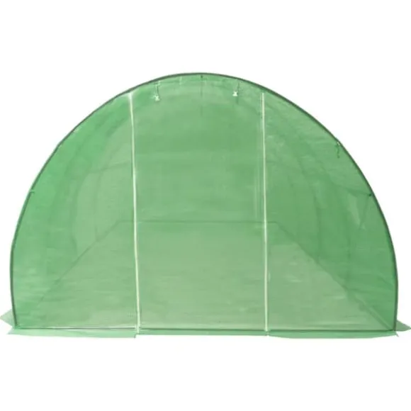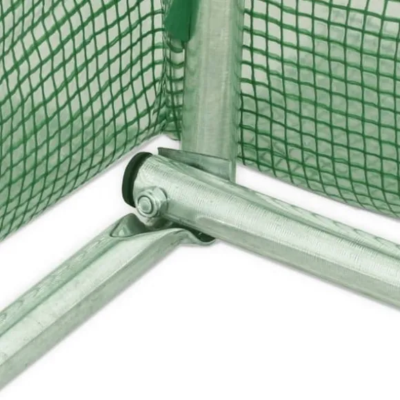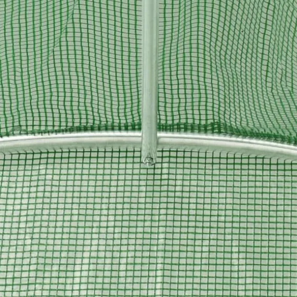 Detta växthus blir en bra lösning för att skydda dina plantor mot vind, regn, sol och skada från fåglar. Växthuset är tillverkat av 140g/m² PE-nättyg som är 25% tyngre än många konkurrenters standard nättyg. Det förhindrar därför påverkan från externa influenser ännu bättre. Växthuset har en stadig och rostfri galvaniserad stålram för extra stabilitet. Växthuset är utrustat med åtta fönster på 38×38 cm för ventilering samt en dörr på 100×185 cm.