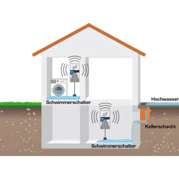 Vattendetektor SHT 241 är en snabbt installerbar nätadapter för övervakning av källare, tvättstuga, pannrum, behållare, m.m. Vattensensorn monteras i närheten av golvet (valrfritt), och apparaten ansluts till eluttaget. En inbyggd signalgivare avger ett högt larm. Den robusta flottören är särskilt avsedd för smutsvatten eller andra vätskor (t.ex. bränsle, diesel, plantbaserade oljor, smörjmedel, bl.a. ). Brytkontakten hos flottören sluts från ca 4 cm nivåhöjd, och aktiverar vattendetektorns ingång. Genom att helt vrida om flottörhuvudet, får man även den omvända kopplingsfunktionen. Förlängning sensorkabel: Vid behov kan du förlänga sensorkabeln upp till 50 m med en kabel (2 x 0,5 mm² ). Du behöver då dela den befintliga sensorkabeln och åter ansluta den med klämmor