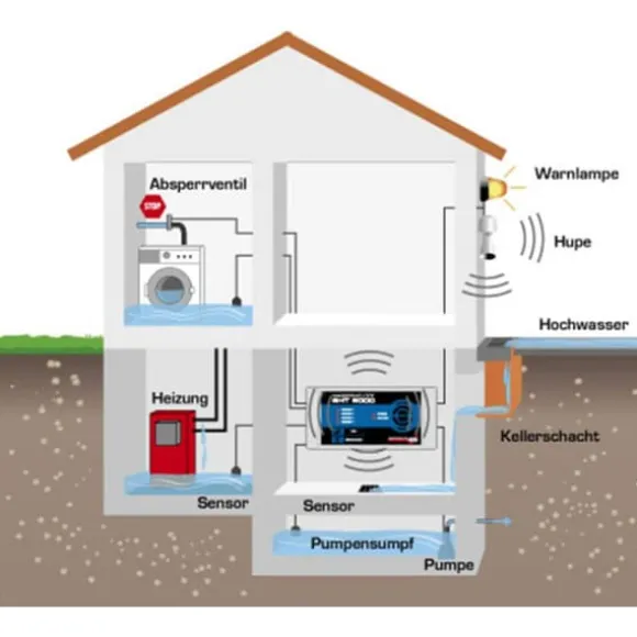 Vattendetektor SHT 5000 – 24V är en effektstark multifunktionsenhet för övervakning av källare, båtar, lastbilar, mobila enheter och mycket mer. På enheten kan per ingång en vattensensor eller flottörbrytare och även flera parallellt anslutas. En inbyggd signalgivare avger ett högt larm, och detta kan kopplas till eller från för varje ingång. Fyra LED:er visar alarmstatusen hos vattensensorerna. Dessutom finns för varje ingång två inställningsmöjligheter. För det första kan det aktiverade larmet sparas och bekräftas genom att trycka på en knapp. För det andra inaktiveras larmet automatiskt om vattennivån underskrids. Batteridrift vid strömavbrott: Med alternativet batteridrift ansluts ett 9 V blockbatteri till vattendetektorn. På så sätt ljuder vid korta strömavbrott ändå ett akustiskt larm och genom reläet utlöses en nödströmstyrkrets. Användning vid icke-ledande vätskor: Du kan även använda vattendetektorn SHT 5000 med andra vätskor som är icke-ledande eller som har farliga egenskaper. Kombinera SHT 5000 enkelt med flottörbrytare.
