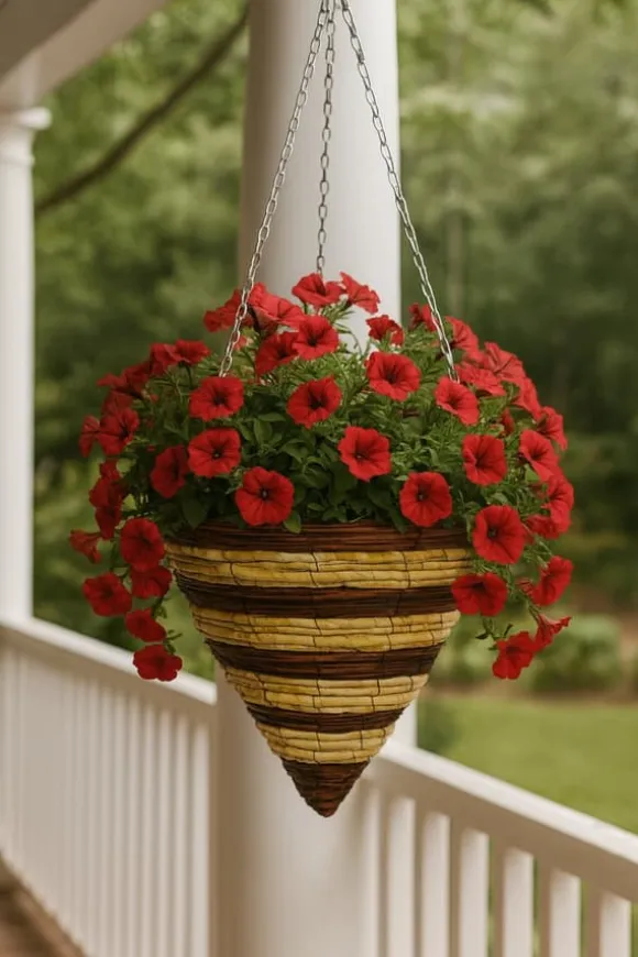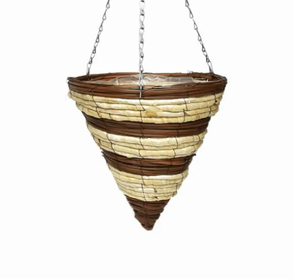 De ekologiska, handflätade korgarna ger ett varmt och harmoniskt intryck och passar perfekt för hängväxter som pelargoner, petunior, murgröna och ormbunkar.