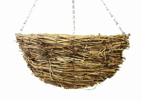 De handflätade korgarna i naturligt material ger en rustik och harmonisk känsla som passar i alla utomhusmiljöer.