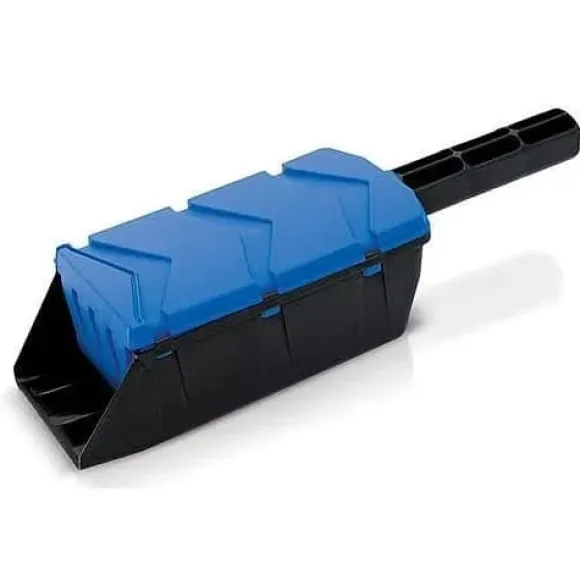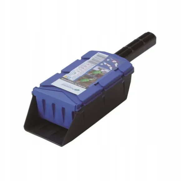 Universell och oumbärlig i varje hushåll, Sharkie dispenser för spridning av salt, sand eller löst gödselmedel. Med den här enkla apparaten är det enkelt att strö salt eller sand på en kall yta – du behöver inte längre använda handskar, du skjuter helt enkelt in dispensern i behållaren där materialet som ska hällas finns och skopan laddas.