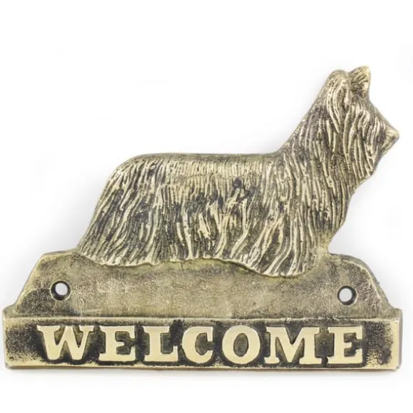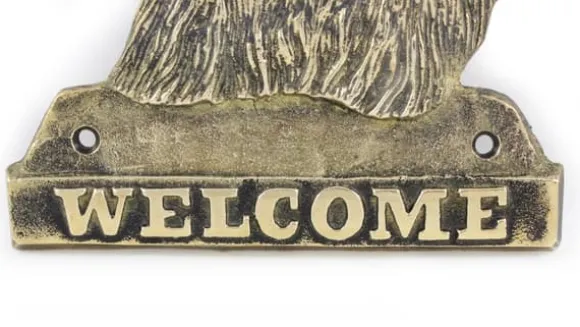 Alla entusiaster av unika heminredningar och varmt mottagande av gäster kommer säkert att gilla vår unika dörrplatta med inskriptionen ”VÄLKOMMEN”. Detta charmiga tillägg kommer omedelbart att visa besökarna att de är välkomna in i ditt hem. Våra välkomstskyltar är handgjorda med största omsorg. Produkten är gjuten av mässing och handpolerad, vilket ger den ett vackert, glänsande utseende. Utrustad med två monteringshål gör den enkel att hänga på dörren. Monteringsspik ingår inte i satsen. Mässingsplack ser bra ut på entrédörren till ett hus, lägenhet eller kontor, men de kan också monteras på väggen eller var som helst du vill skapa en vänlig atmosfär. Det är också en bra idé för en inflyttningspresent när du firar din älskades flytt. Denna välkomstskylt är en fantastisk dekoration för alla som uppskattar unika och vänliga tillägg till sin interiör. Mått: Kontrollera måtten på en av de bifogade bilderna. Material: mässing