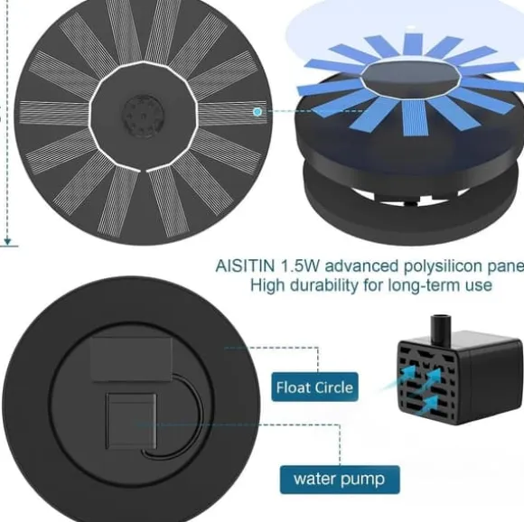 Den här fontänen drivs helt av solenergi och börjar arbeta på bara 3 sekunder i solljus. Den tillför livfull skönhet till din trädgård samtidigt som den ger en friskvattenkälla för fåglar under sommaren.