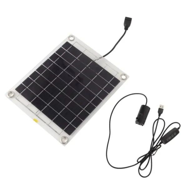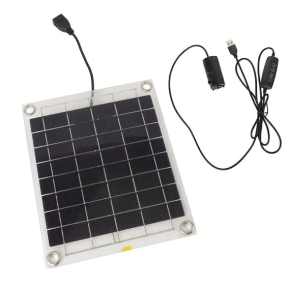 Artikeltyp: Solpanels vattenpumpsats Material: ABS bruttovikt: 258g / 9,1oz Solpanel Storlek: Ca. 21,5 x 17,5 cm / 8,5 x 6,9 tum (utan strömlagringsfunktion) Solpanelsström: 10W uteffekt: 5V pumpeffekt: 3W maximalt lyft av vattenpump: 3 meter Paketet inkluderar: