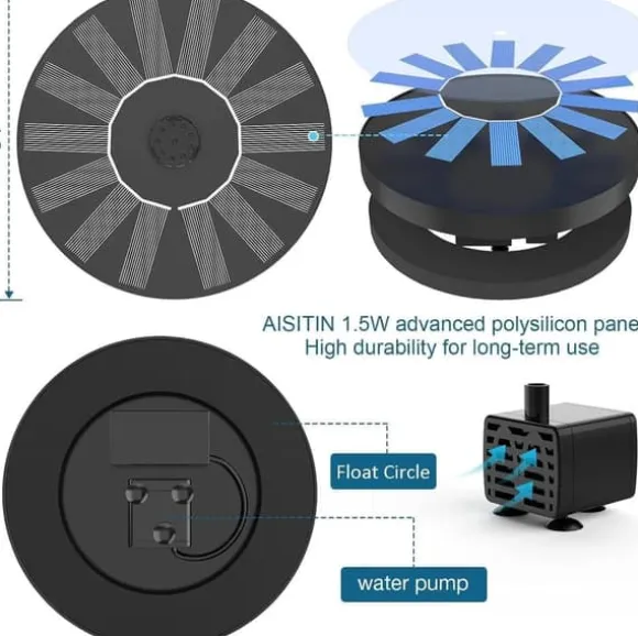 Försköna din trädgård med denna vackra solcellsdrivna enhet – helt batterifri och miljövänlig! Perfekt för fågelbad, dammar, pooler eller dekorativa planteringskärl.
