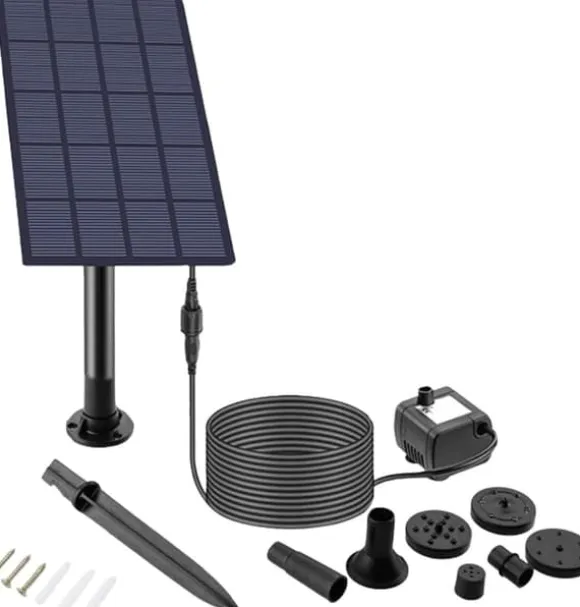 Denna energisnåla fontän drivs helt av solkraft med 20 000 timmars livslängd. Med 180° roterbar panel och 3m sladd ger den flexibel placering och en sprayhöjd på upp till 55 cm – perfekt för fågelbad, dammar och trädgårdsdekoration.