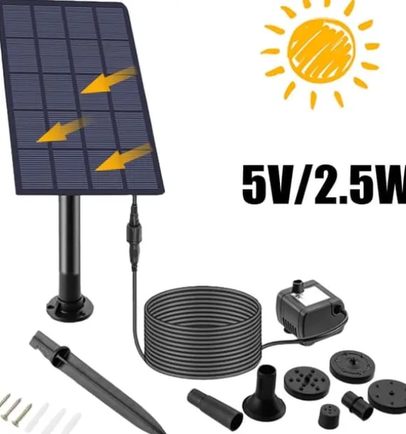 2,5W Solcellsfontän med Roterbar Panel & 4 Munstycken
