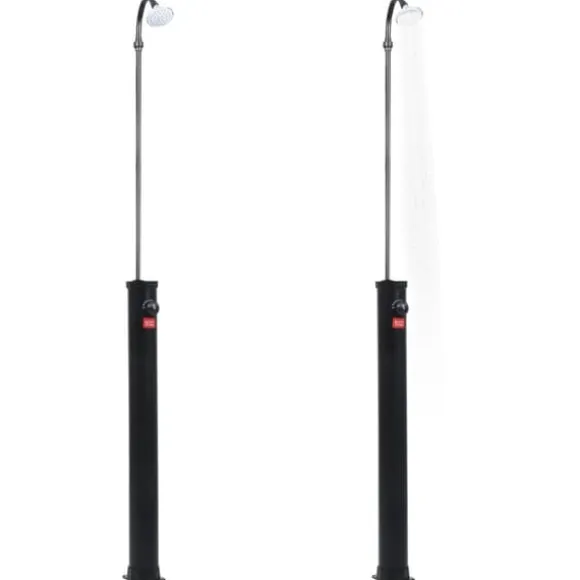 Solduschen är energibesparande behöver ingen värmeutrustning. Denna utomhusdusch är tillverkad av PVC och ABS, vilket gör den hållbar. Dess svarta hölje bidrar till snabb uppvärmning av vattnet på soliga dagar. Uteduschen är designad med praktiska temperaturinställningar som låter dig välja varmt eller kallt vatten. Dessutom kan den också väldigt enkelt anslutas till en vanlig trädgårdsslang utan VVS.