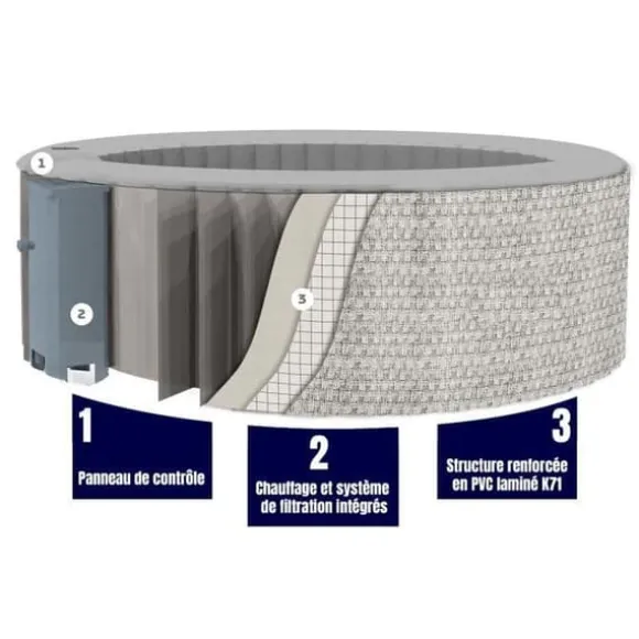Ospazia uppblåsbart spabad för 6 personer är perfekt för avkoppling hemma. Den kompakta runda formen gör det enkelt att placera, medan 130 mikrostrålar och en vattentemperatur upp till 40°C ger en optimal spaupplevelse. Perfekt för återhämtning efter träning eller avkoppling med familj och vänner. Levereras med komplett tillbehörssats för direkt användning.